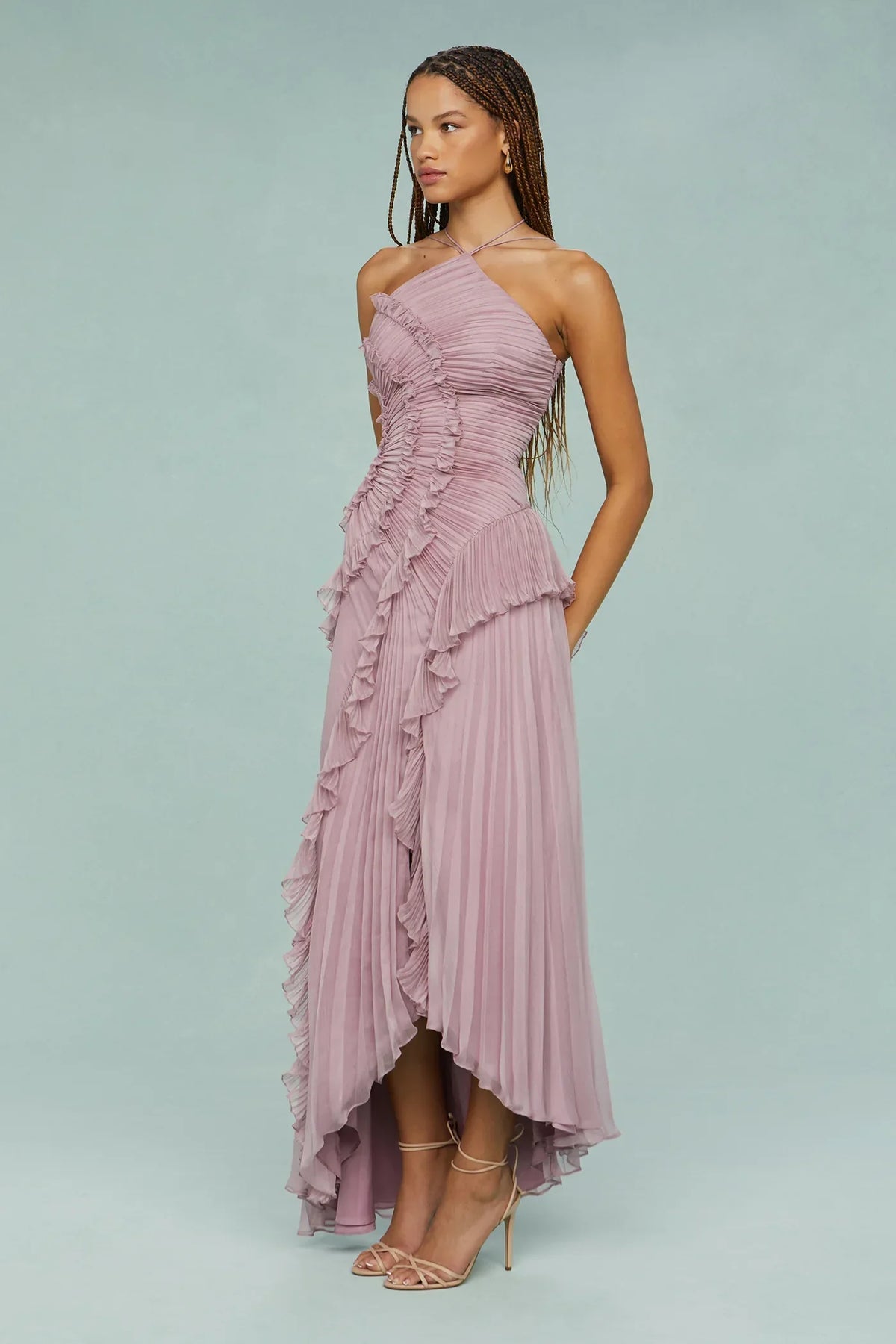 Pourquoi Vous Allez L'Aimer : Des teintes lilas éthérées qui envoûtent et des volants fluides inspirés des nénuphars, ce vêtement est un véritable bijou. Le col raffiné noué ajoute une touche sculptée à votre look.